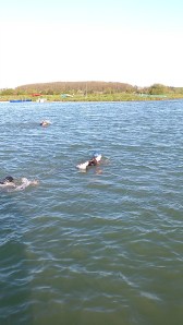 I didn’t see any fish. The water tasted fine (you can’t help swallowing some!) I wasn’t ‘allowed’ my swimming socks by Keith our instructor (‘they fill up with water and drag your feet down’ – so they’ll be going back to the shop). I had been worried about squidgy stuff and weeds under my toes and yes, there was both mud and weeds but it really didn’t feel that bad.