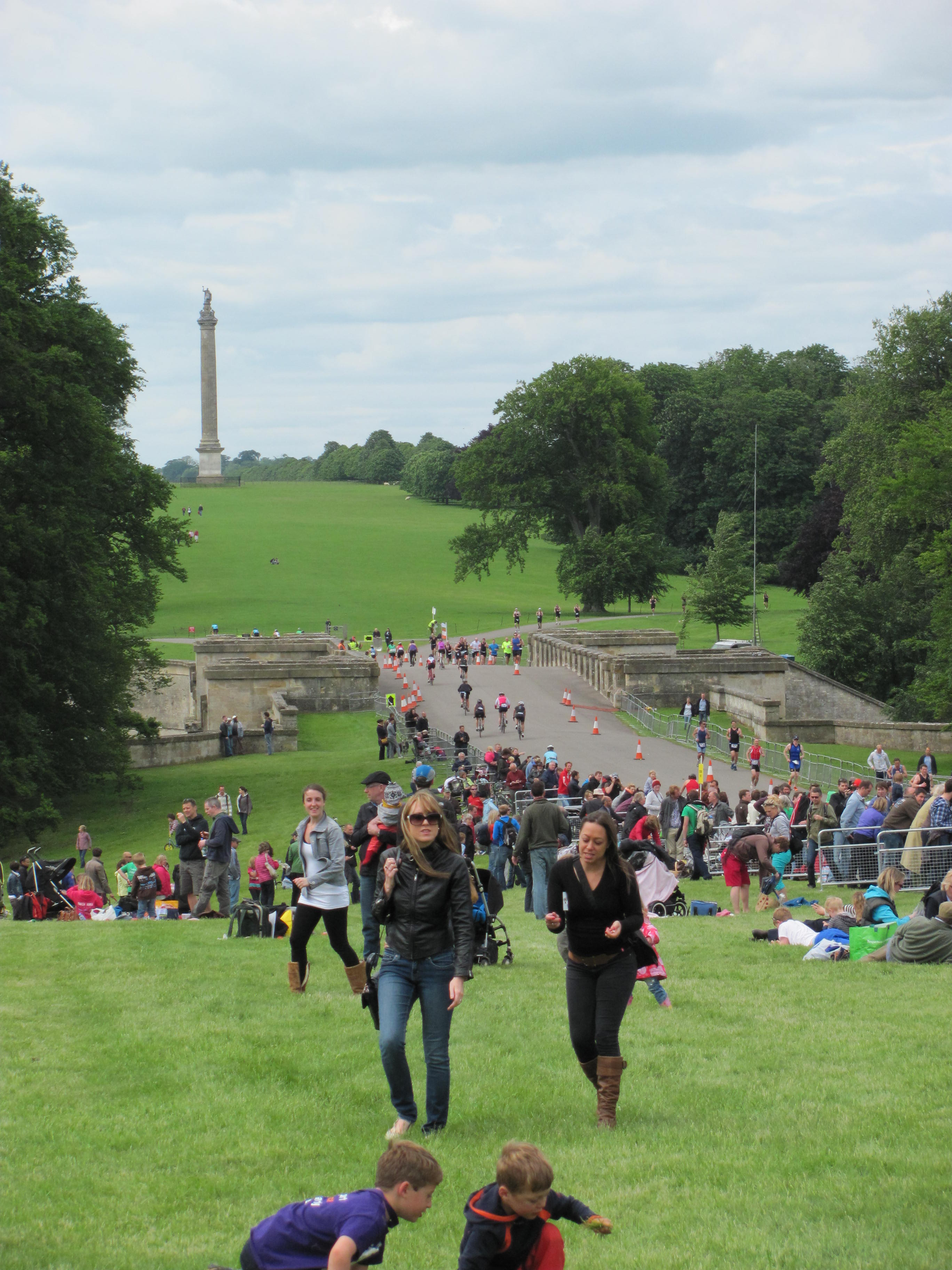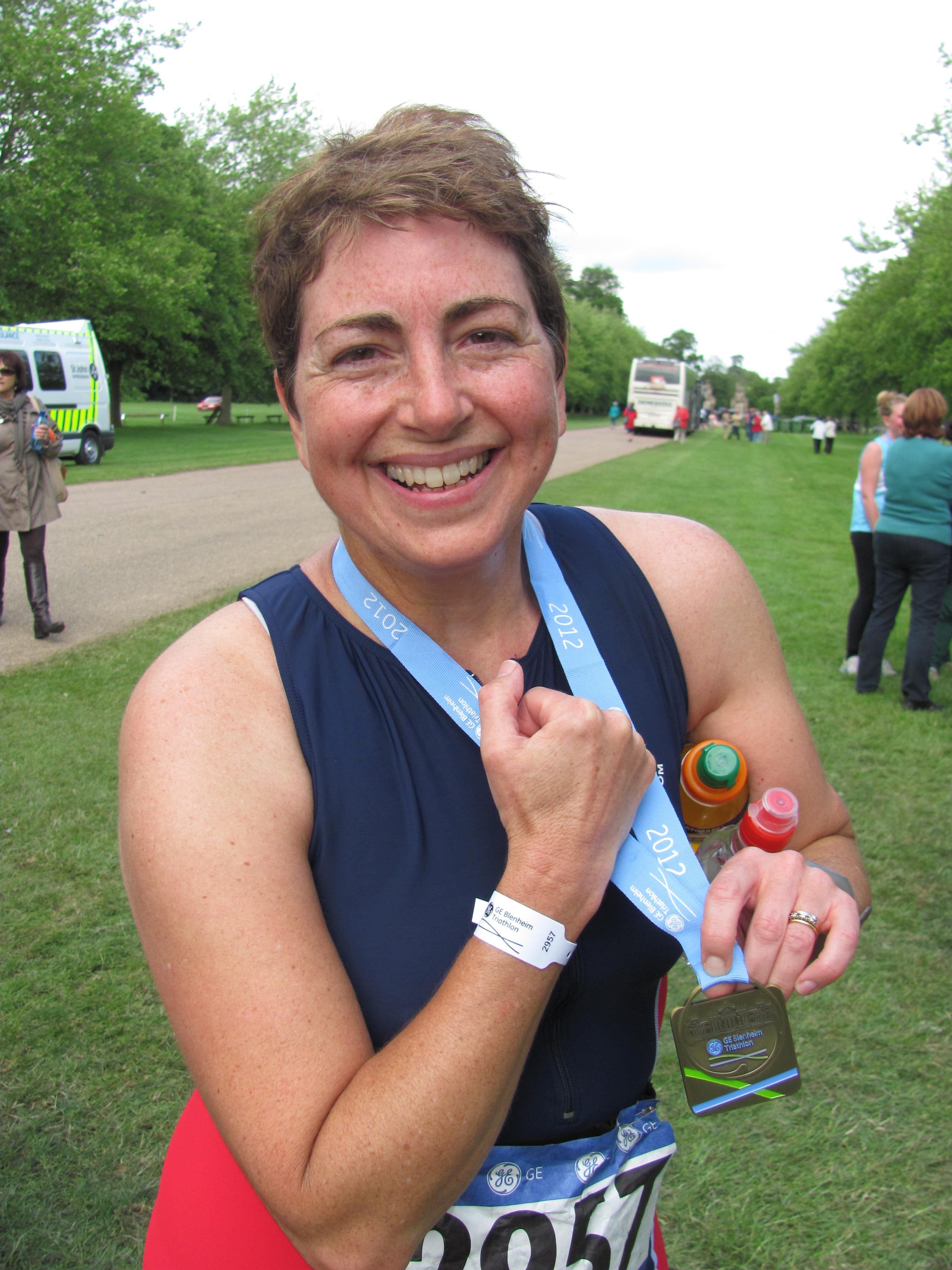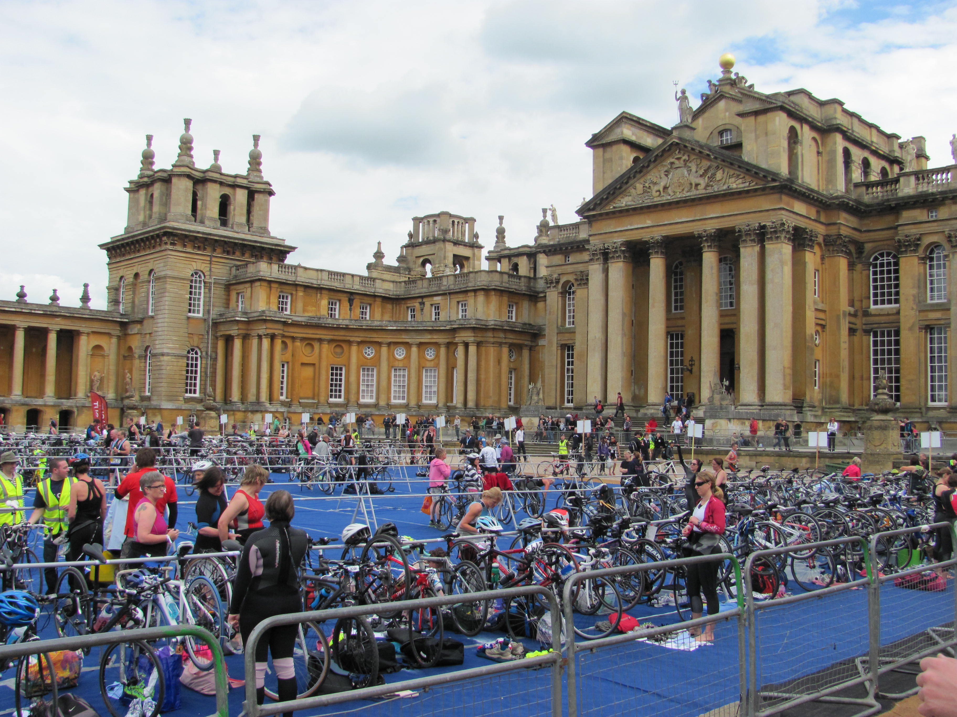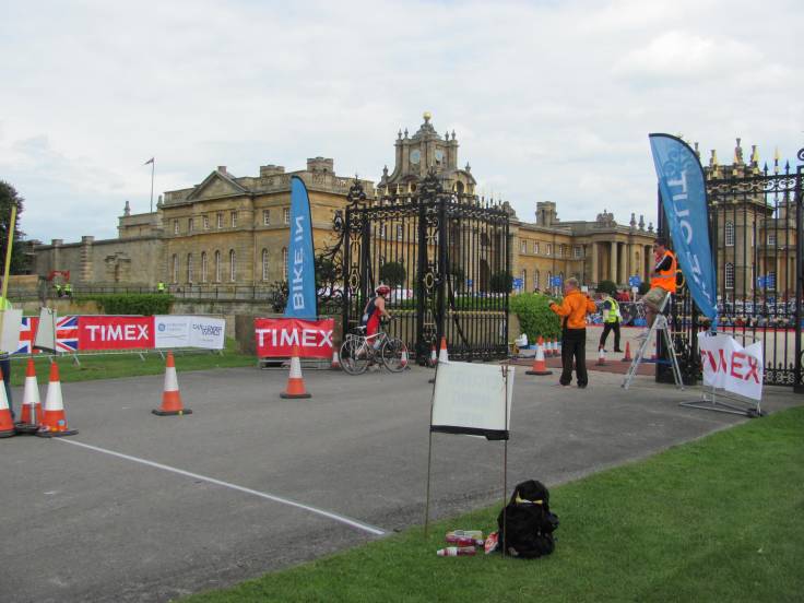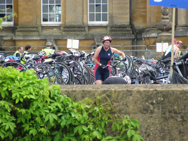 Yesterday’s sunshine was a welcome relief after a very wet week and showed off  glorious Blenheim stately home at its best.  But I didn’t go to potter around the gardens or meander round the State rooms. I went  to swim in the lake, cycle three times round the estate and run twice round the lake.  It was ‘Fab’. Masses of  cheering spectators, great support from course marshals, brilliant mix of fun athletes and utterly nutty kneenies and ‘location, location, location’. Blenheim is just beautiful.
