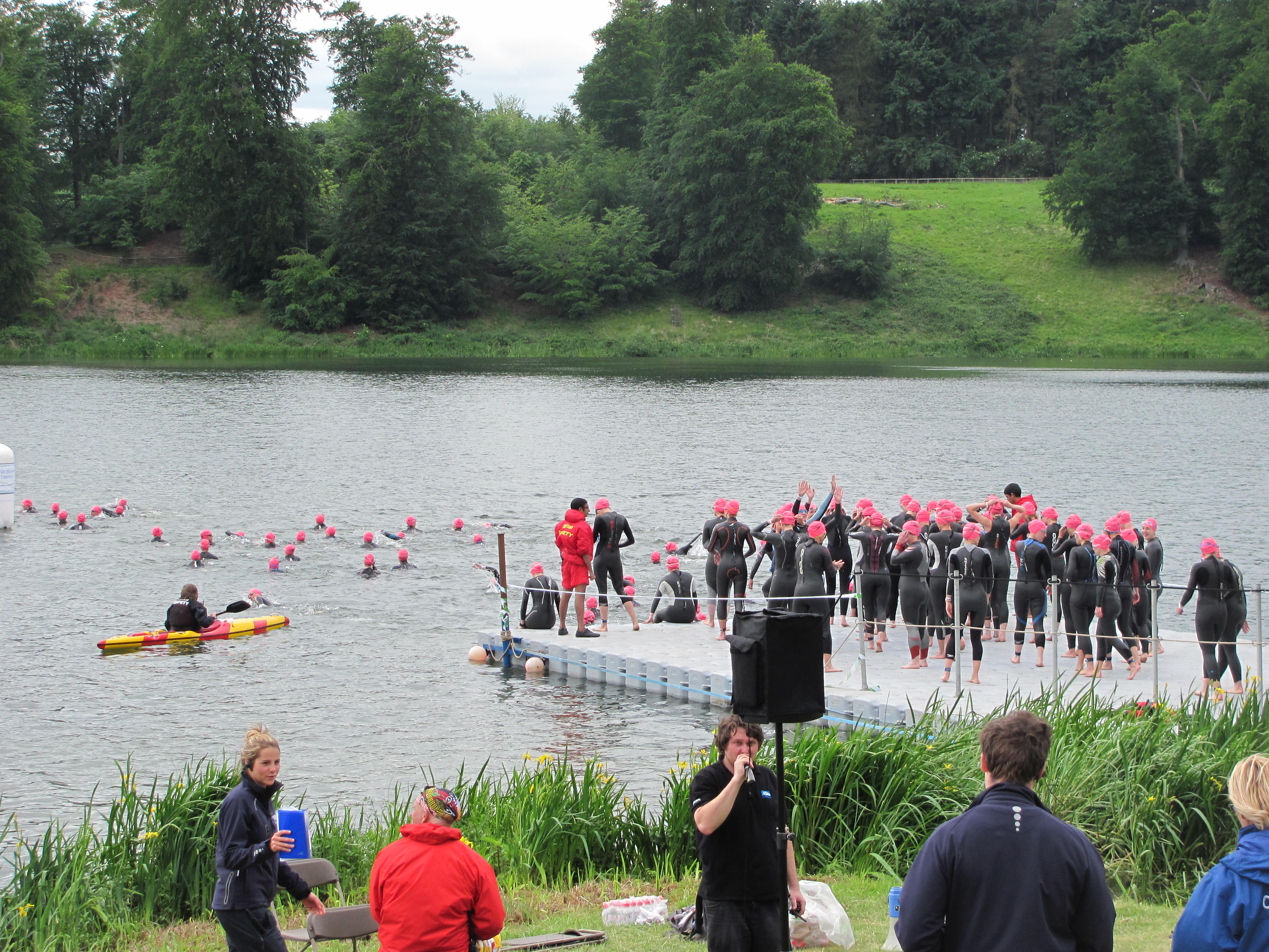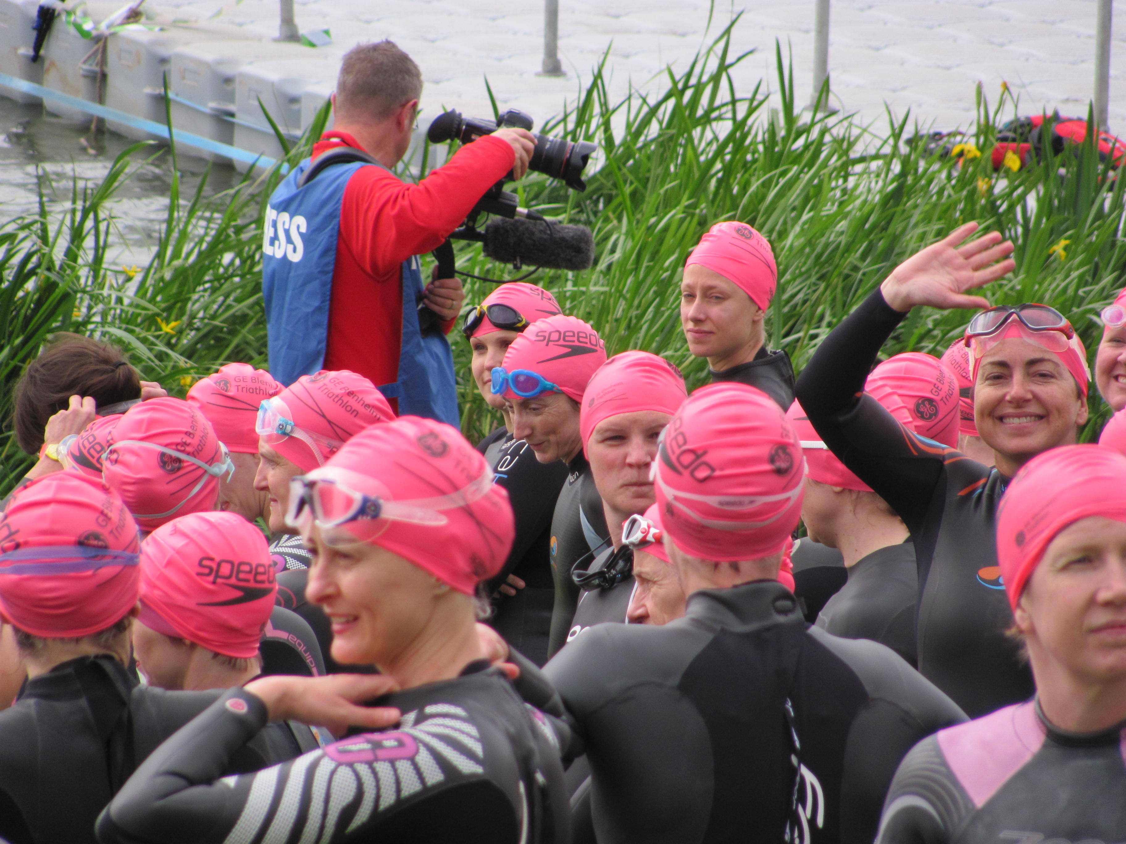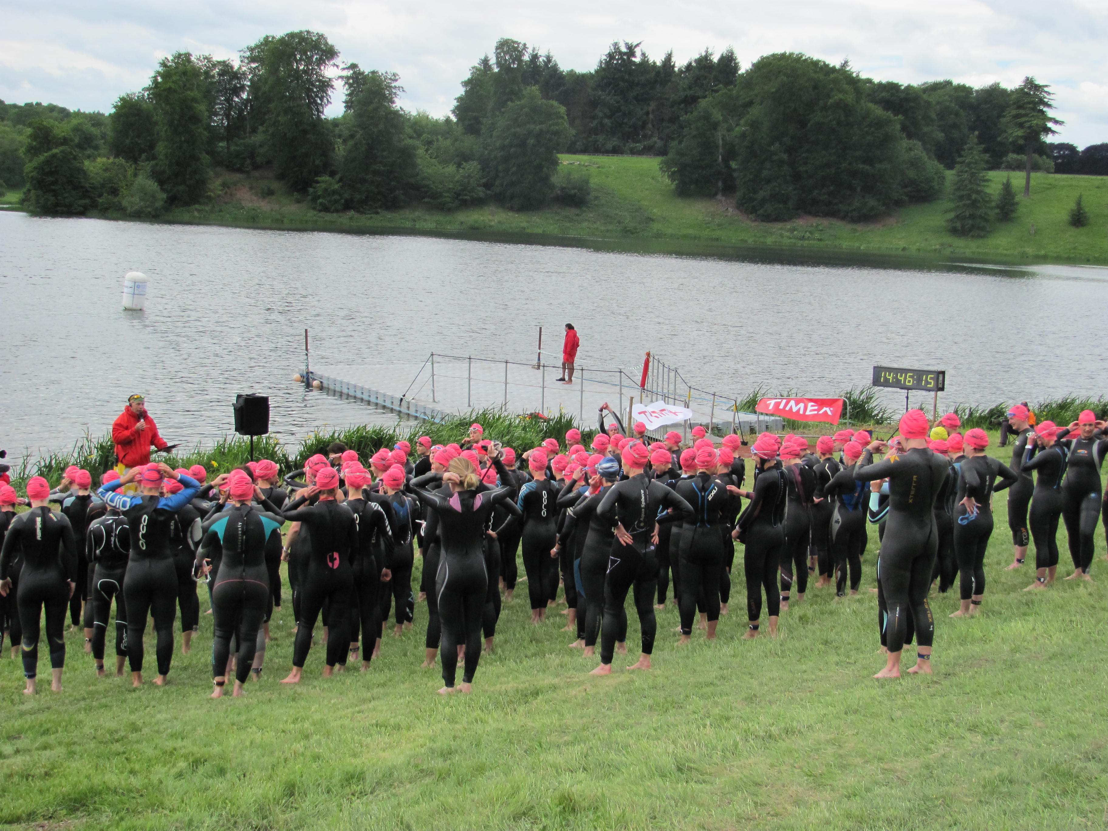 Wave 18 – the ladies in pink caps- have their pre-race briefing. The instructions for the run element were ‘It’s not that far, just get on with it!’
