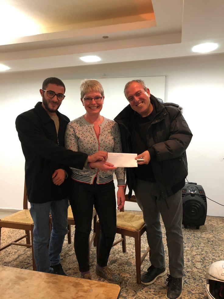 Here they both are pictured, receiving a gift from us pilgrims along with Cathy whose church particularly raised funds for this particular charity.
