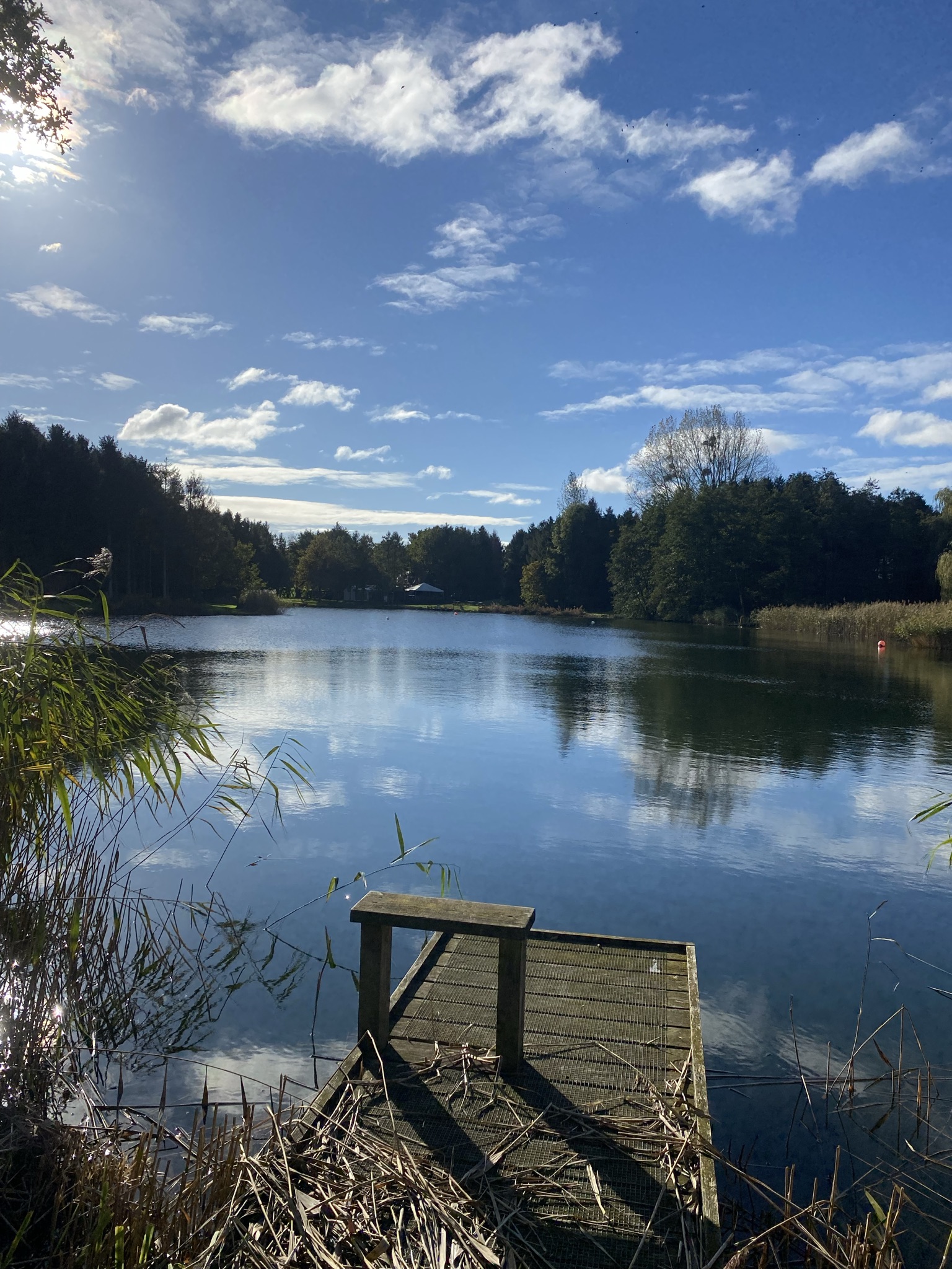 So here below: pictures of our new (to us) church, our new (to us) dog, and Sheila’s lake oasis.