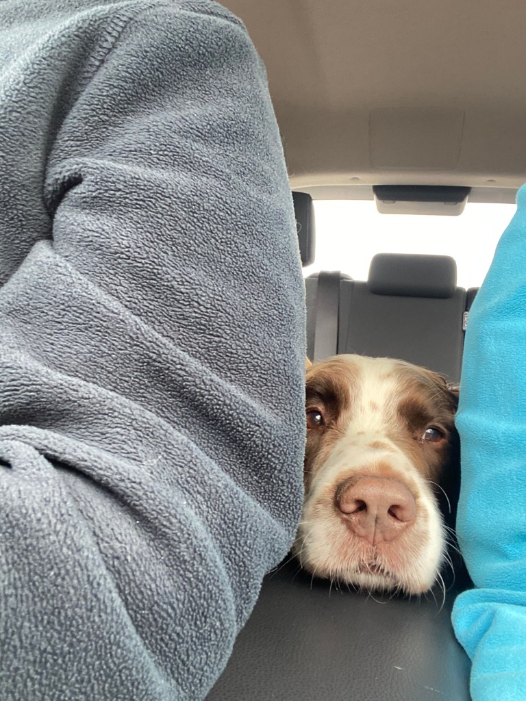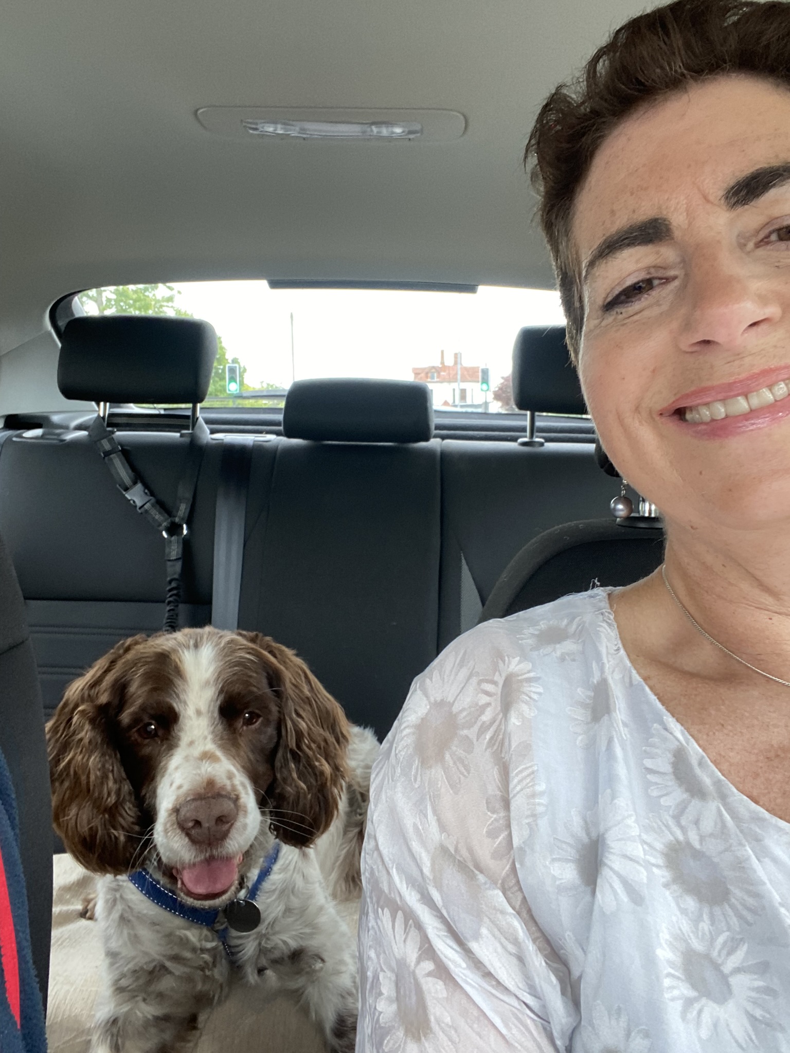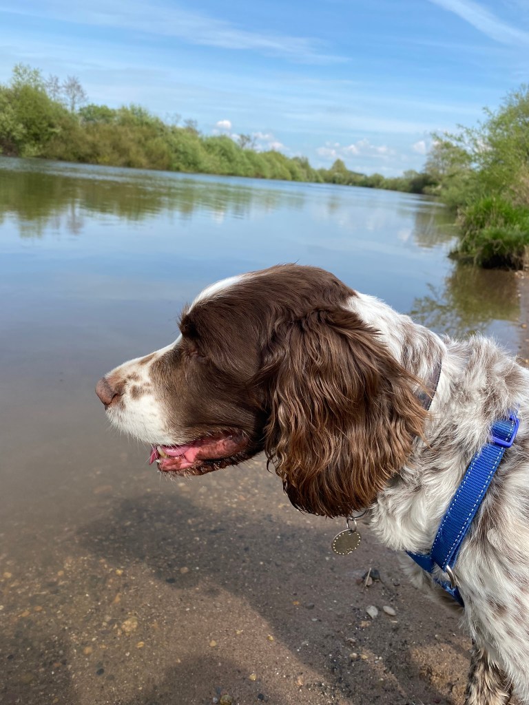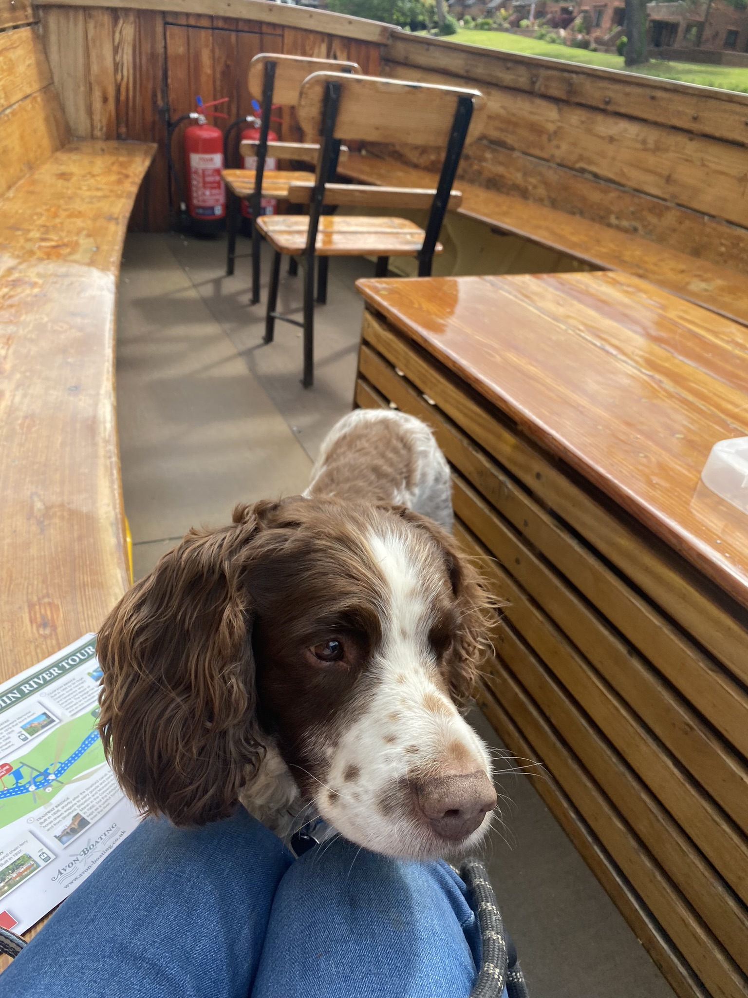 Bobby loved walks, he loved his Nan and all his humans. He loved his green dino, drinking from muddy puddles, sleeping on sofas or sleeping anywhere really. He came to love the car so long as he got to be in the ‘driver’ seat between us. He loved the open fields and the especially the stream which he visited every day. He wasn’t at all keen on boats so we didn’t do that again.